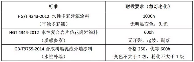 雖然不同標準的耐候指標高低上有所差異,但是還是可以看出氟碳漆在實際的規范要求中的耐候要求是數倍于多彩涂料和合成樹脂乳液外墻涂料。一般我們涂料行業內對于氙燈老化的一般認知是,雖然與戶外耐候時間沒有直接的線性關系,但是大約可以認為1000h的氙燈老化對應的戶外(普通大氣,即C3及以下環境)耐候性大約可以維護10年,目前我們的大氣環境一般都會比C3更加惡劣,特別目前多數發達地區多為沿海城市的情況下,1000h加速老化對應的戶外實際時間打折很嚴重,一般來說沒有2500h以上的耐老化數據是很難達到使用20年以上的要求的。
