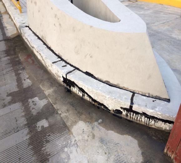 第二道工序:將局部破損較嚴重區(qū)域采用聚合物砂漿修補平整。先在大的缺陷、裂縫處涂上均勻、足夠的底涂,等其干燥之后用聚合物砂漿將其修補完整。